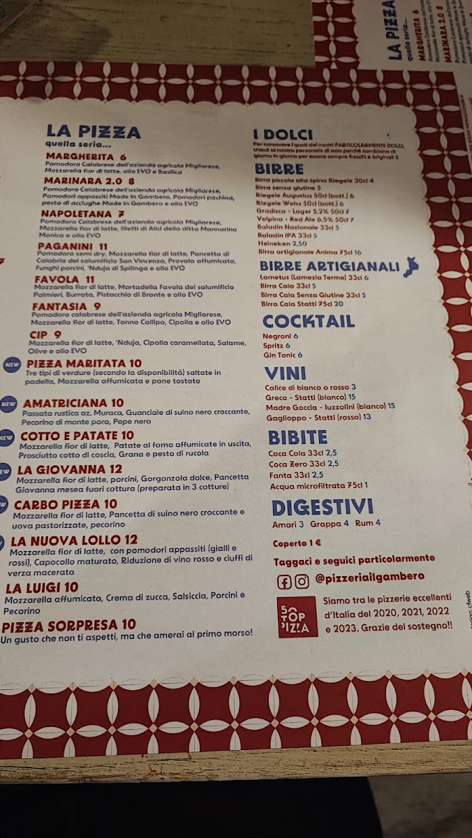 The atmosphere is vibrant and welcoming, enhancing the overall dining experience. Reviewers rave about the speedy service and extensive appetizer selection, making it an ideal place for both takeaway and dining in. Whether you're a meat lover or a vegetarian, there's something for everyone. As one visitor noted, a few more vegetarian options could elevate this already impressive menu. For any pizza enthusiast, Il Gambero is a must-visit for an unforgettable meal in Italy.